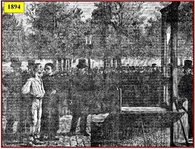 - Le condamné était Marcel Sabourin, journalier âgé de 32 ans, il fut exécuté le 16 février 1894 à 7 h et 10 min sur le haut de la place de la Brèche.