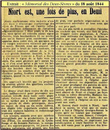 Le jeudi 17 août 1944, dans l’après-midi, un bombardement aérien " Anglo-Américains " visant la gare a frappé Niort.