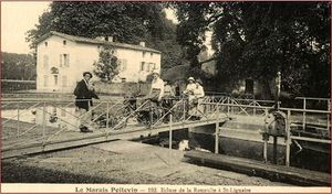 Les passerelles de l’écluse de la Roussille permettent la traversée du bassin de l’écluse aux habitants et animaux venant des fermes de la rive droite, le moulin de la Roussille, de l’auberge etc…