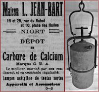 - En 1922, Louis Jean-Bart commercialise des lampes acétylène de toutes sortes et le carbure de calcium pour les alimenter.