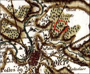 - On retrouve en effet en cet endroit, sur les cartes "Cassini", le symbole indiquant la présence de celles-ci au XVIIIè siècle. (Voir extrait plan Cassini)