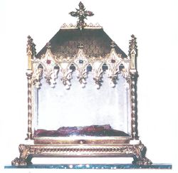 Ainsi, en 1950, les recherches de M.Béguin confirment que les reliques sont en Espagne et plus précisément au monastère de Saint Laurent de l’Escorial (2).