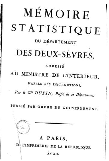 26. (télécharger) Claude Etienne Dupin, Mémoire statistique du département des Deux-Sèvres.png . . 363 × 533 . . 66 Kio . . Bernardin . . 28 mars 2024 à 19:01