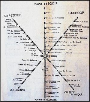 En 1965, l’entreprise Brivin s’associe au maire de Niort, Émile Bèche, pour créer 3 lignes de bus dans la ville de Niort. (Voir plan).