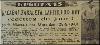 En 1932, Léonce Espinassou cède son poste de directeur du Stade Niortais au Docteur Laffitte.