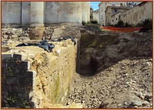 En 2012, avant d’aménager les abords du [[Donjon de Niort|Donjon]] par la ville de Niort, des fouilles archéologiques eurent lieu le long du Donjon, côté [[Sèvre Niortaise (le fleuve)|Sèvre]]. | En 2012, avant d’aménager les abords du [[Donjon de Niort|Donjon]] par la ville de Niort, des fouilles archéologiques eurent lieu le long du Donjon, côté [[Sèvre Niortaise (le fleuve)|Sèvre]]. | ||