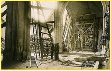 :Le 14 novembre 1910, la voûte du chœur s’effondra, le lendemain, se fut les deux voûtes latérales qui s’effondrèrent…