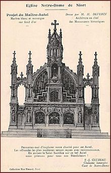 [[Fichier:1919 Maitre Autel ND.jpg|220px|right|thumb| 1919, dessin du Maître-Autel réalisé par Henri Deverin.]]