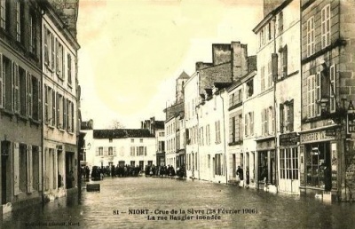 | − | [[Fichier:4_janvier_1936_Crue_Quai_de_la_Regratterie_+á_Niort.jpg |400px|right|thumb|... et le quai de la Regratterie (1936)]] | + | [[Fichier:4_janvier_1936_Rue_Baugier_+á_Niort.jpg |400px|right|thumb|La rue Baugier sous les eaux ('''1936''')]] |